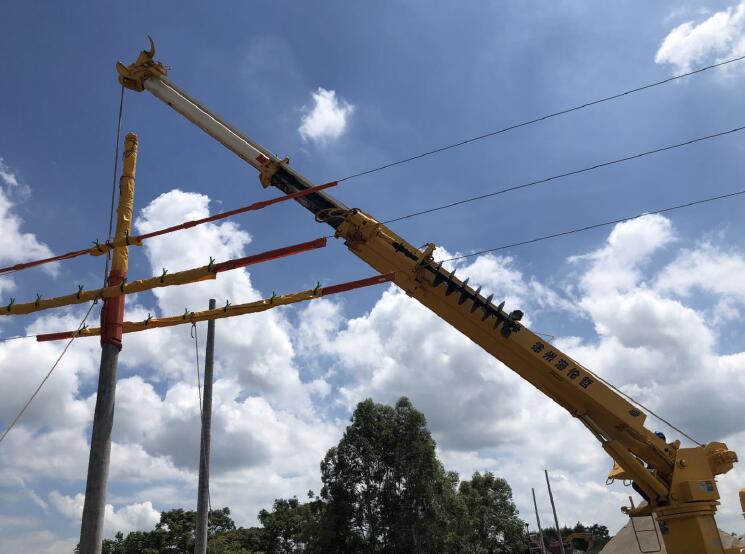 拉開三相導(dǎo)線、用黃色絕緣護具遮蔽電桿桿頂、吊車進駐現(xiàn)場……現(xiàn)場安全監(jiān)護、地面配合人員按照事先制定的作業(yè)方案有序配合。“右邊一點,好!慢慢向上移……”12時 20分,穿上“黃馬褂”的水泥電桿被吊臂車緩緩拉起、立直;確認調(diào)整好后,工作人員迅速開始回填電桿桿坑。經(jīng)過三個半小時的緊張作業(yè),帶電線路的“虎口”間被成功種下了一枚“水泥牙”,該局帶電組立電桿作業(yè)順利結(jié)束。