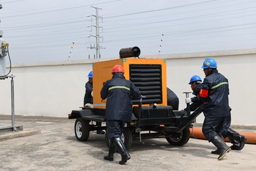 針對今年東??h域雨水增多、氣候變化頻繁,本次防汛演練以東??h域突降暴雨為背景,110千伏濱河變模擬暴雨后排水系統(tǒng)排水不及,雨水經(jīng)過電纜溝倒灌進變電站,綜合檢驗多部門協(xié)同合作,出現(xiàn)汛情時運維人員的防汛對應(yīng)能力。