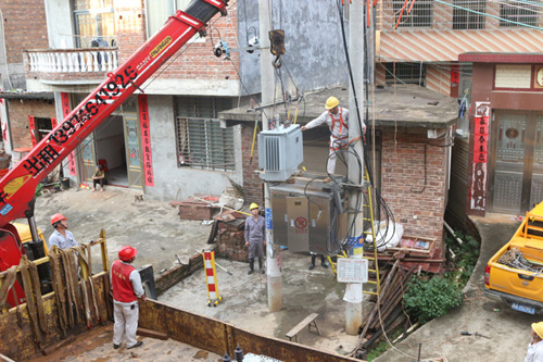 圖為8月18日下午雷雨停后,在寧遠(yuǎn)縣天堂鎮(zhèn)天堂社區(qū)曾家洞位置的10KM桐前線寄干支線故障搶修現(xiàn)場,電力黨員先鋒突擊隊(duì)員在更換被雷擊壞的變電器等設(shè)備。