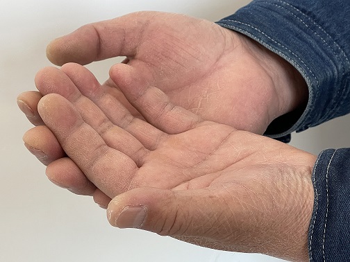 記不清在多少個(gè)凜冬和雪天進(jìn)行線路應(yīng)急搶修工作,特別是長(zhǎng)時(shí)間在桿塔上作業(yè),讓張旭棟患上了頸椎病和腰腿關(guān)節(jié)炎。此外,張旭棟也沒有過多地“注意保護(hù)他的雙手”。在戶外溫度接近零下30攝氏度的冬季工作,線手套、絕緣手套根本無法抵御得了嚴(yán)寒。但張旭棟好像是有著使不完的勁兒,即便雙手被凍得顫抖發(fā)麻,他也沒停下,只想著能盡快完成搶修,恢復(fù)送電。有時(shí)在給設(shè)備部件的螺栓進(jìn)行預(yù)緊時(shí),不免磕碰在架構(gòu)尖銳的棱角上,工作結(jié)束后摘下手套,張旭棟的手通常是青一塊紫一塊,甚至隔著線手套被劃傷流血后都已結(jié)痂……