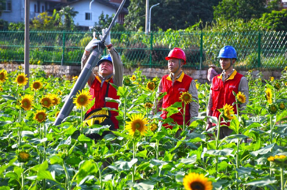 供電工作人員檢查維護農(nóng)村配電網(wǎng)設(shè)施(陳德鈞 攝)