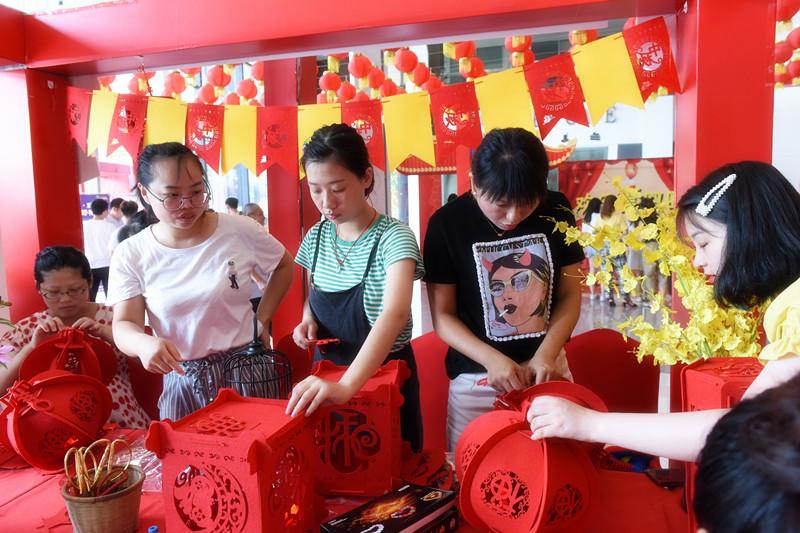 傳統(tǒng)習(xí)俗不只猜燈謎,親手制作的中秋宮燈怎會缺少,你瞧,她們都在埋頭認(rèn)真地研究這宮燈呢!