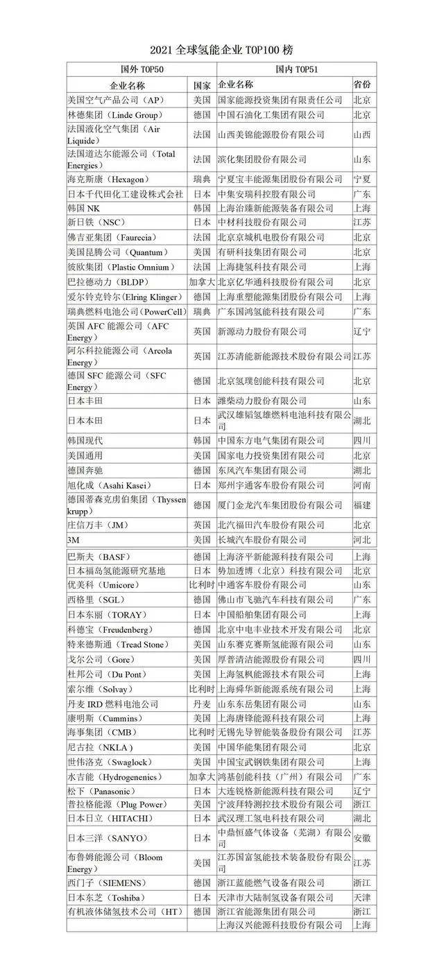 12月9日,首屆氫能國際(中國·南海)主題峰會暨2021全球氫能企業(yè)TOP 100榜發(fā)布會在佛山市南海區(qū)舉辦。該榜單由地方政府、企業(yè)、科研機構等多方聯(lián)合發(fā)布,集納全球101家氫能企業(yè),將助力匯聚“政產(chǎn)學研用資”力量,推動氫能產(chǎn)業(yè)上下游跨區(qū)域聯(lián)動。國家能源集團、中國石化、美錦能源等51家企業(yè)上榜!