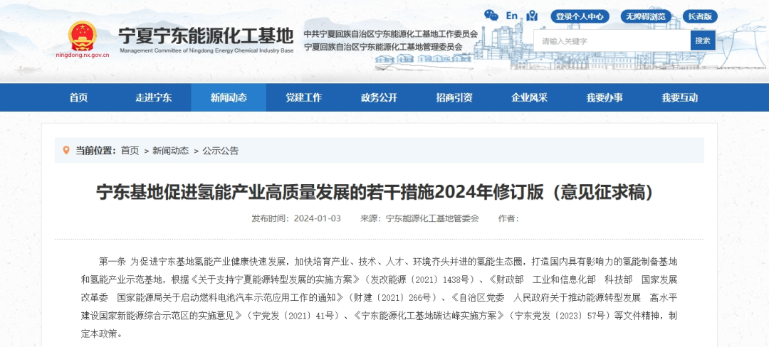 寧東基地促進(jìn)氫能產(chǎn)業(yè)高質(zhì)量發(fā)展的若干措施2024年修訂版(意見征求稿)
