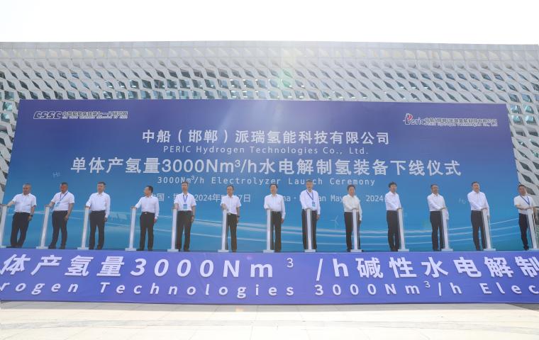 5月17日,國內(nèi)最大單體產(chǎn)氫量3000Nm³/h水電解制氫裝備下線儀式暨“氫動未來”氫能產(chǎn)業(yè)發(fā)展大會在河北省邯鄲市中國船舶集團(tuán)第七一八研究所(簡稱七一八所)舉辦。“此次下線投用的制氫裝備,突破了多項前沿科學(xué)難題和核心關(guān)鍵技術(shù),實現(xiàn)了單體產(chǎn)氫量由2000Nm³/h到3000Nm³/h的跨越,對我國加快構(gòu)建清潔低碳、安全高效的能源體系具有重要意義。”七一八所所長、黨委副書記李俊華表示。