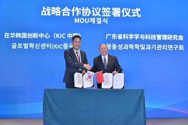 本次論壇由廣東省科學學與科技管理研究會(GSTMR)、在華韓國創(chuàng)新中心(KIC中國)共同主辦。論壇上,廣東省科學學與科技管理研究會與在華韓國創(chuàng)新中心(KIC中國)共同簽署戰(zhàn)略合作協(xié)議,翻開合作新篇章。雙方將按照此次論壇達成的共識,全力協(xié)調(diào)各方力量,每年定期舉辦相關(guān)方面的高層次研討活動,進一步推動相關(guān)科技成果在大灣區(qū)加速落地轉(zhuǎn)化。