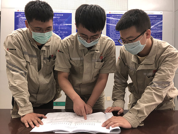 生產(chǎn)人員現(xiàn)場(chǎng)研究討論系統(tǒng)圖修訂工作