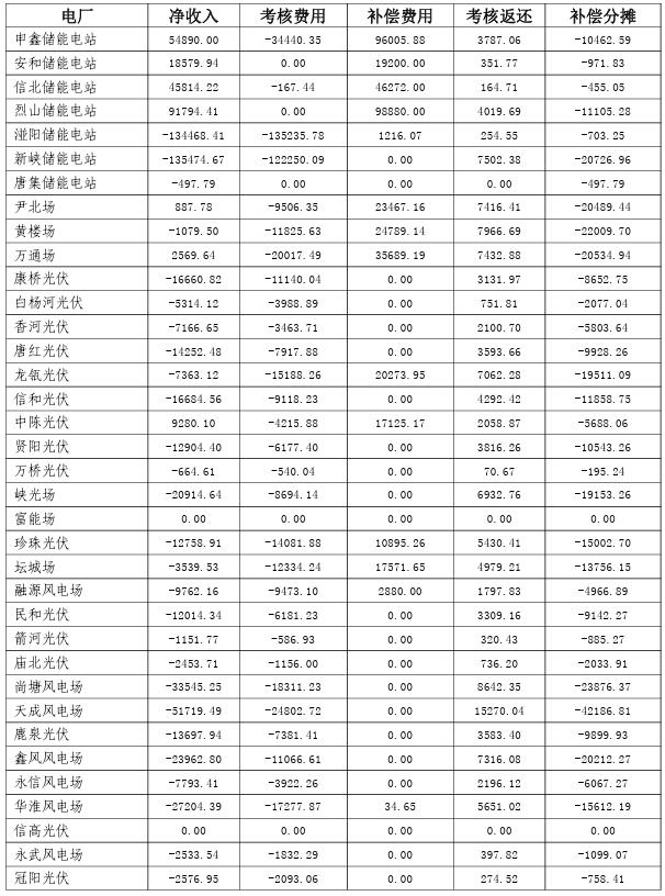 根據(jù)華東區(qū)域“兩個細(xì)則”規(guī)則要求,國網(wǎng)安徽省電力有限公司完成了2023年10-12月直調(diào)電廠并網(wǎng)運行考核、輔助服務(wù)補償統(tǒng)計計算,并向我局報送了并網(wǎng)運行考核及輔助服務(wù)補償情況。其中,吉泉直流配套跨省跨區(qū)新建火電機組調(diào)試運行期差額資金共計8882813.74元,納入12月輔助服務(wù)補償。2023年10-12月安徽電網(wǎng)發(fā)電廠輔助服務(wù)補償及并網(wǎng)運行考核費用結(jié)算表詳見附件,現(xiàn)予公示。如有不同意見,可于3月1日前向我局反映。