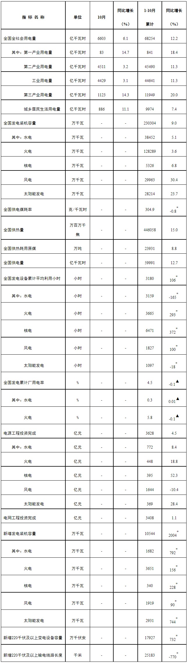 注:1.全社會用電量為全口徑數(shù)據(jù),全國供電量為調度口徑數(shù)據(jù)。2.“同比增長”列中,標*的指標為絕對量;標▲的指標為百分點。