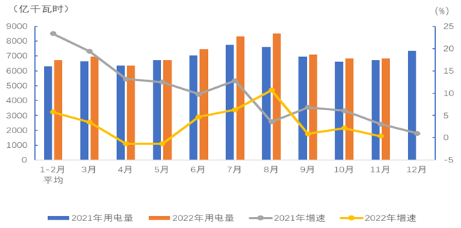 圖4 2021、2022年重點行業(yè)分月用電量情況