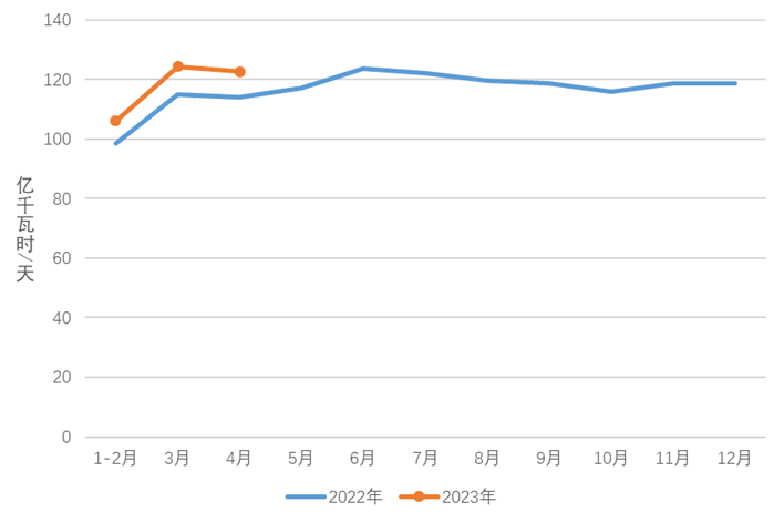 圖3 2022、2023年分月制造業(yè)日均用電量