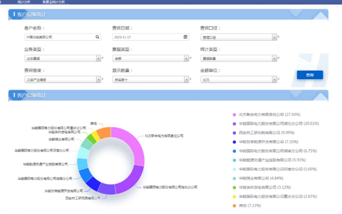 在此基礎(chǔ)上,開通了涵蓋整個(gè)華能集團(tuán)成員單位的票據(jù)信息全口徑、全流程、多維度的統(tǒng)計(jì)分析功能,三級(jí)管理體系下分層穿透監(jiān)管,能夠按照種類、地域、產(chǎn)權(quán)口徑、承兌行以及重要性等進(jìn)行交互式展示,降低集團(tuán)票據(jù)“多、散、松”的管理風(fēng)險(xiǎn)。