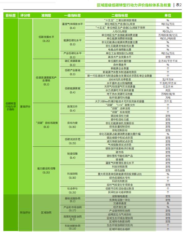 區(qū)域層級低碳轉型行動力評價指標體系及權重。綠色和平供圖