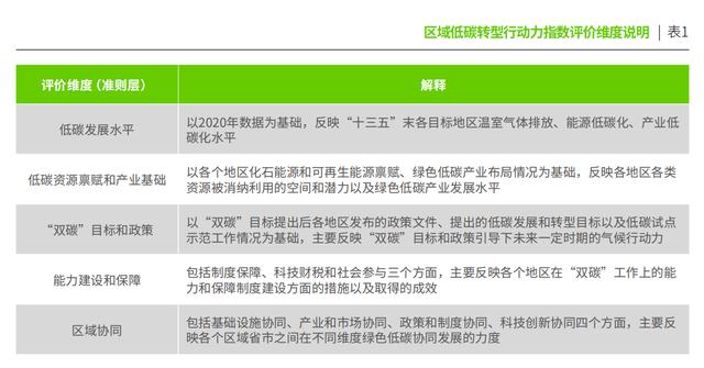 區(qū)域低碳轉型行動力指數(shù)評價維度說明。綠色和平供圖