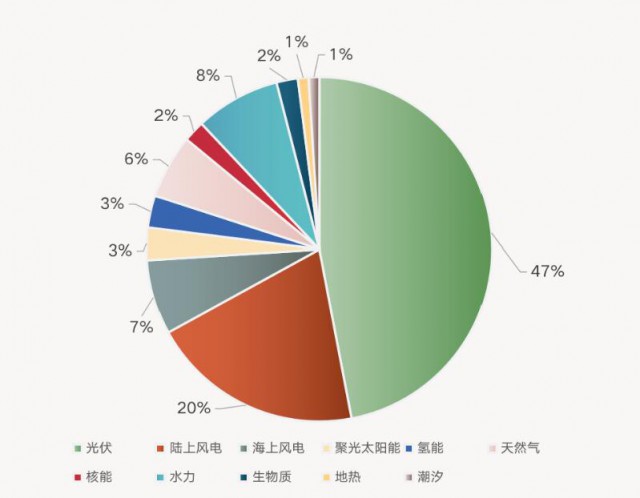 該機(jī)構(gòu)還預(yù)測,到2050年,光伏將在全球電力裝機(jī)中的占比達(dá)到47%,風(fēng)電占比為27%。