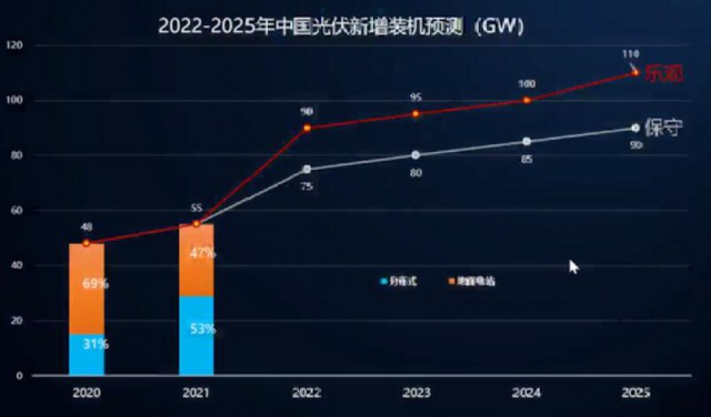 根據(jù)中國光伏行業(yè)協(xié)會(CPIA)則預(yù)估,2022-2025年,我國年均新增光伏裝機(jī)將達(dá)到83-100GW,系全球光伏第一大裝機(jī)國。