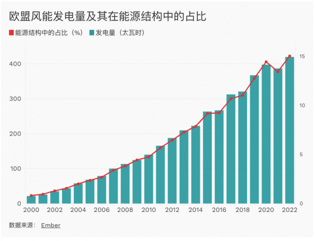 風(fēng)能產(chǎn)業(yè)呈現(xiàn)出不同的景象:根據(jù)歐盟委員會(huì)的數(shù)據(jù),目前歐盟產(chǎn)能可以滿足歐盟85%的風(fēng)能需求。