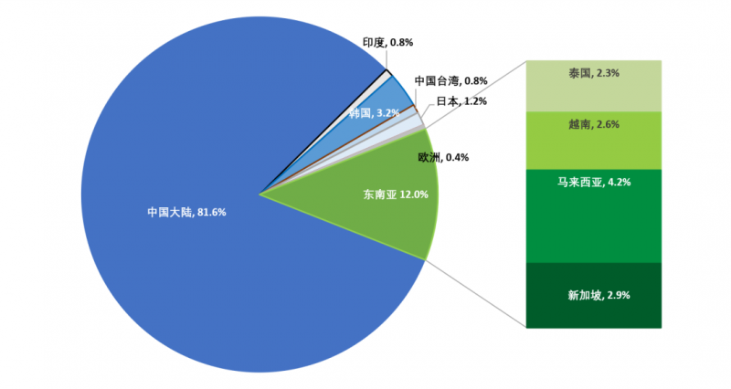 中國大陸電池片產(chǎn)量占比保持在80%以上