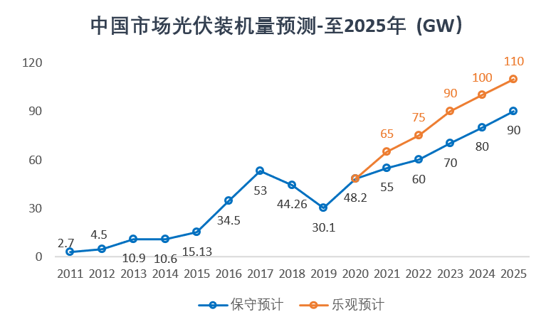 2020年,中國地區(qū)光伏裝機(jī)量達(dá)到 48.2 GW,遠(yuǎn)超過之前的預(yù)期