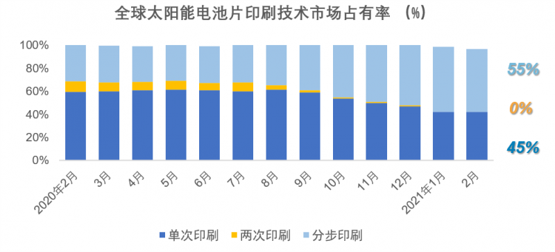 2021年1月,分步印刷技術(shù)的全球市場(chǎng)份額占比穩(wěn)定,保持市場(chǎng)主流地位