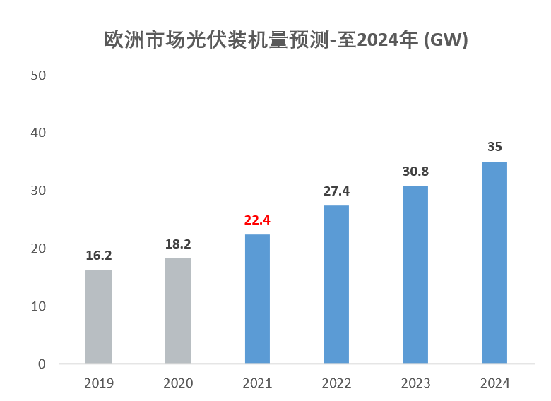 歐洲市場(chǎng)2020年的裝機(jī)情況表現(xiàn)積極,在接下來的4年中,光伏裝機(jī)需求將更加強(qiáng)勁,主要有以下增長因素:
