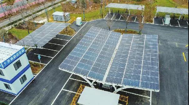 濟南小清河北路一處停車場,遮陽棚頂部安裝了光伏發(fā)電組件。王鋒 攝