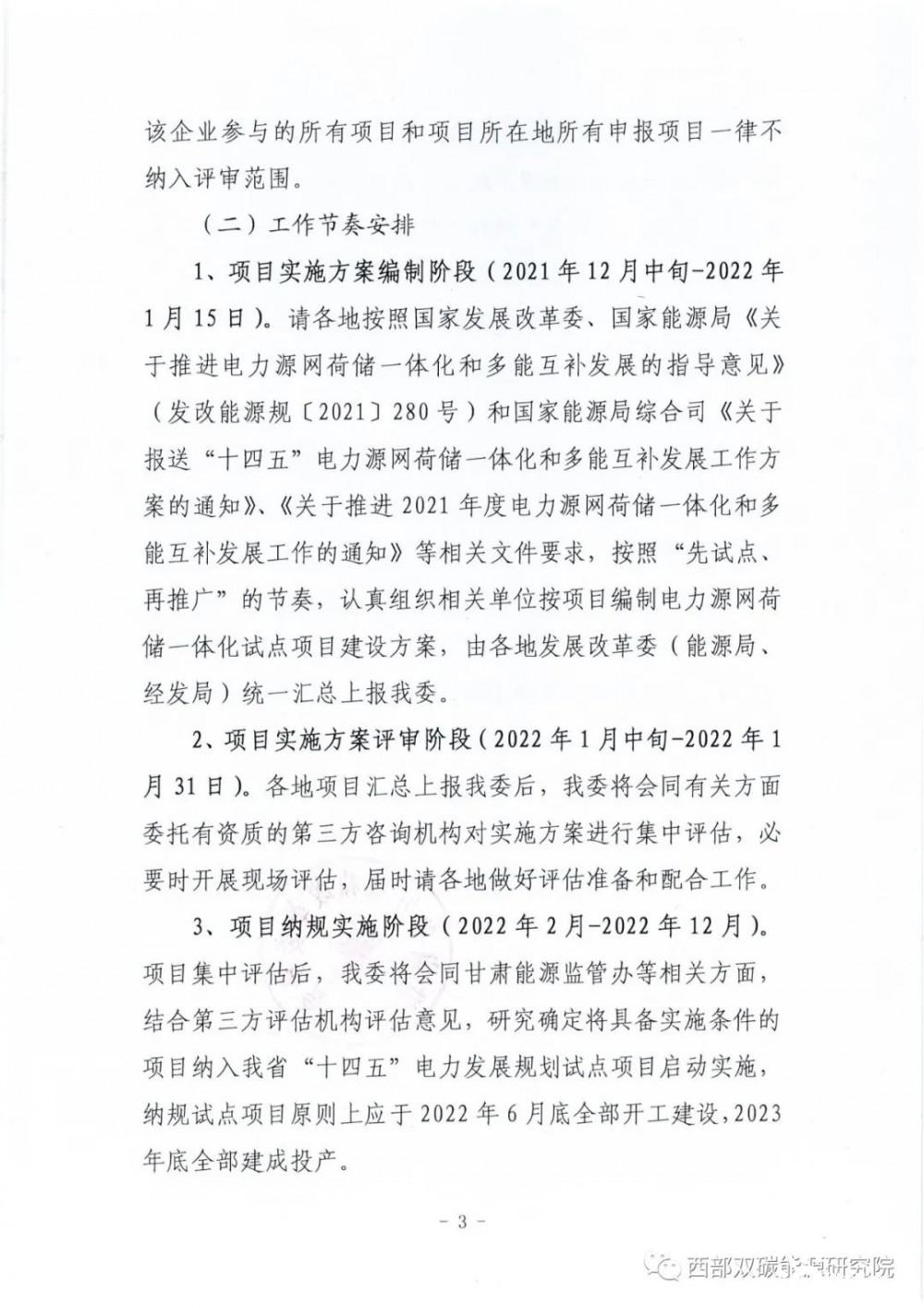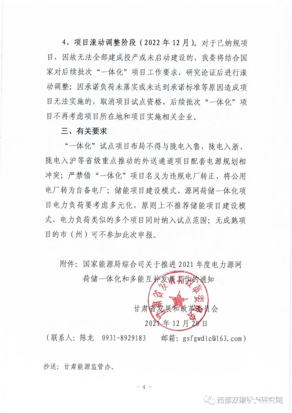 12月20日,甘肅省發(fā)改委印發(fā)《關(guān)于組織申報(bào)“十四五”電力源網(wǎng)荷儲一體化和多功能互補(bǔ)發(fā)展首批試點(diǎn)項(xiàng)目的通知》,就項(xiàng)目申報(bào)有關(guān)事項(xiàng)給出具體指導(dǎo)。