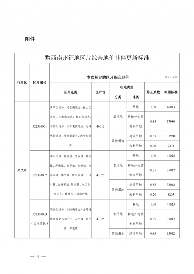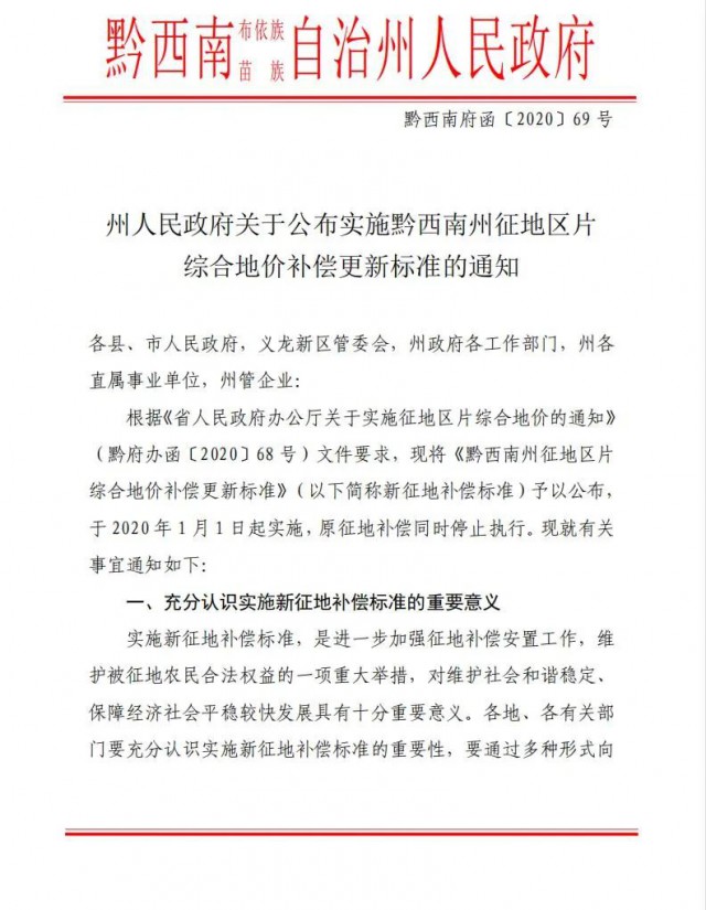 根據(jù)《州人民政府關(guān)于公布實施黔西南州征地區(qū)片綜合地價補償更新標(biāo)準(zhǔn)的通知》(黔西南府函〔2020〕69號)補償標(biāo)準(zhǔn)執(zhí)行。
