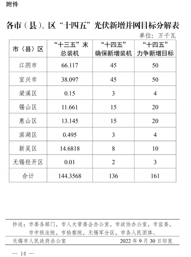 此外,“十四五”期間,對(duì)于完成新增并網(wǎng)目標(biāo),安排光伏發(fā)電補(bǔ)貼資金并落實(shí)補(bǔ)貼的地區(qū),市級(jí)自 2022年起分年度給予補(bǔ)助。對(duì)納入全國(guó)整縣(市、區(qū))屋頂分布式光伏開(kāi)發(fā)試點(diǎn)的地區(qū),最高按其年度實(shí)際發(fā)放光伏發(fā)電專(zhuān)項(xiàng)補(bǔ)貼總額的30%進(jìn)行補(bǔ)助;其他地區(qū)最高按照15%進(jìn)行補(bǔ)助;對(duì)于建成國(guó)家整縣屋頂分布式光伏試點(diǎn)示范的地區(qū)視情給予獎(jiǎng)勵(lì)(以上政策針對(duì)無(wú)錫市區(qū),江陰、宜興結(jié)合實(shí)際自行參照落實(shí))。