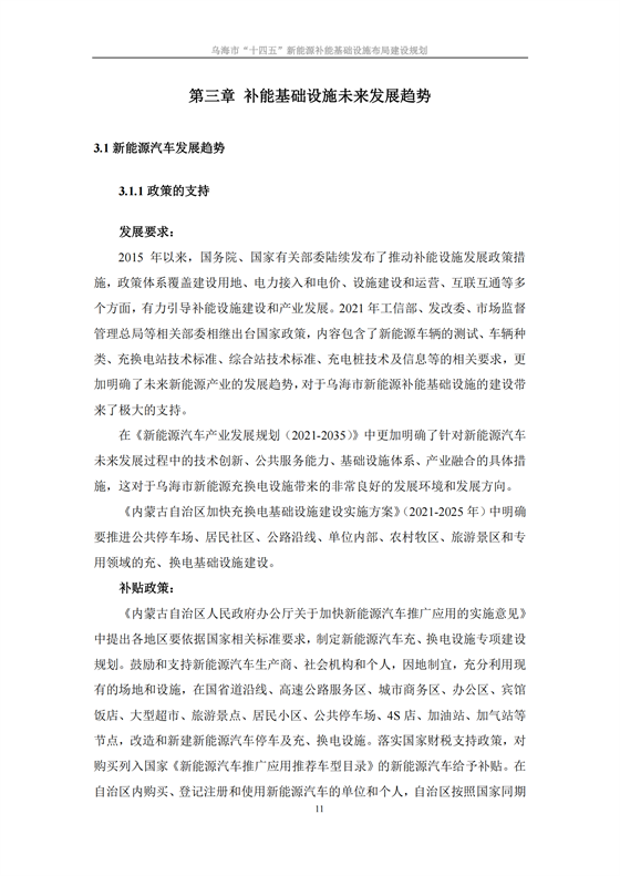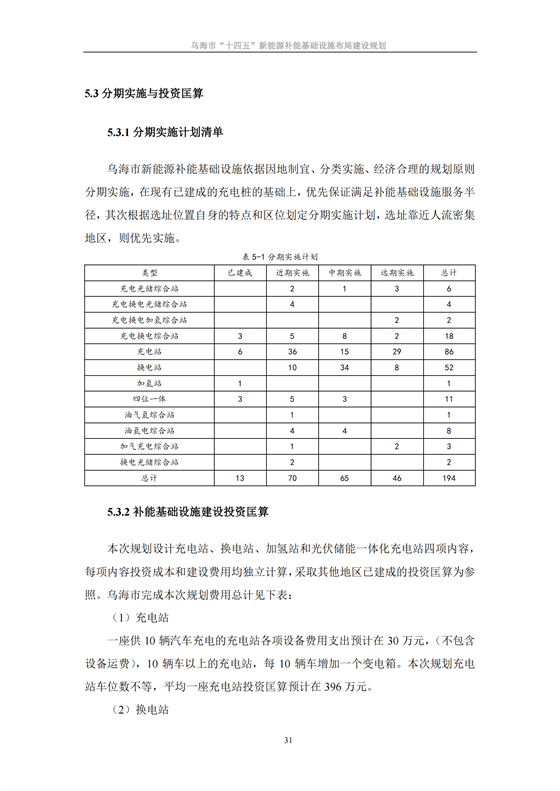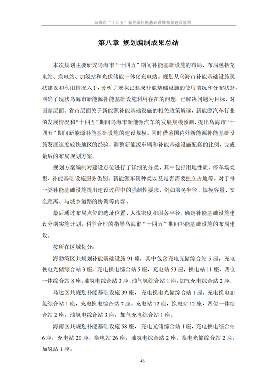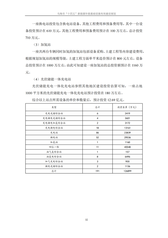 日前,內(nèi)蒙古自治區(qū)烏海市能源局印發(fā)《烏海市“十四五”新能源補能基礎(chǔ)設(shè)施布局建設(shè)規(guī)劃》,《規(guī)劃》提出發(fā)展目標(biāo):建設(shè)補能基礎(chǔ)設(shè)施共計194座,包含11座四位一體綜合站,加油加氫充電綜合站8座,加油加氣加氫綜合站1座,充電換電綜合站18座,充電換電加氫綜合站2座,充電換電光伏儲能綜合站4座,充電光伏儲能綜合站6座,換電光儲綜合站2座,加氣充電綜合站3座,充電站86座,換電站52座,加氫站1座。