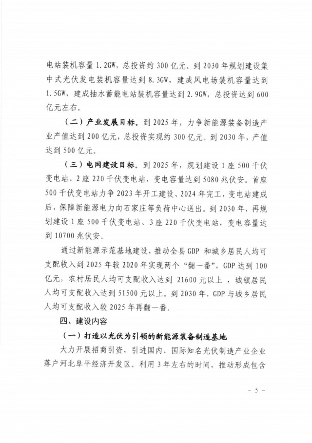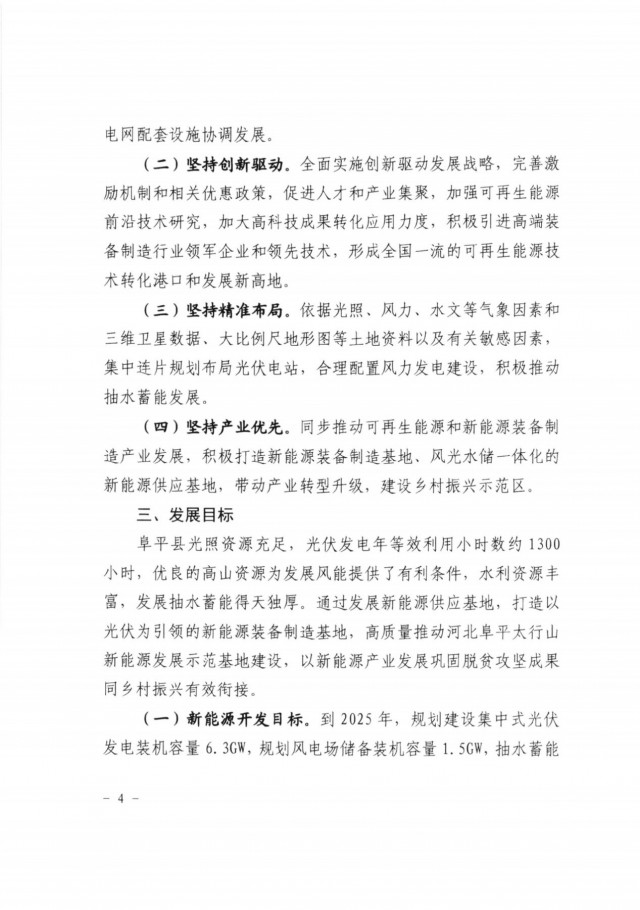 三、原則同意《河北阜平太行山新能源發(fā)展示范基地實(shí)施方案》提出的新能源開發(fā)目標(biāo),到2025年規(guī)劃建設(shè)集中式光伏6.3GW、風(fēng)電1.5GW、抽水蓄能1.2GW,2030年在此基礎(chǔ)上進(jìn)一步實(shí)現(xiàn)高質(zhì)量跨越式發(fā)展。