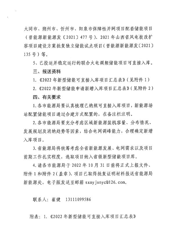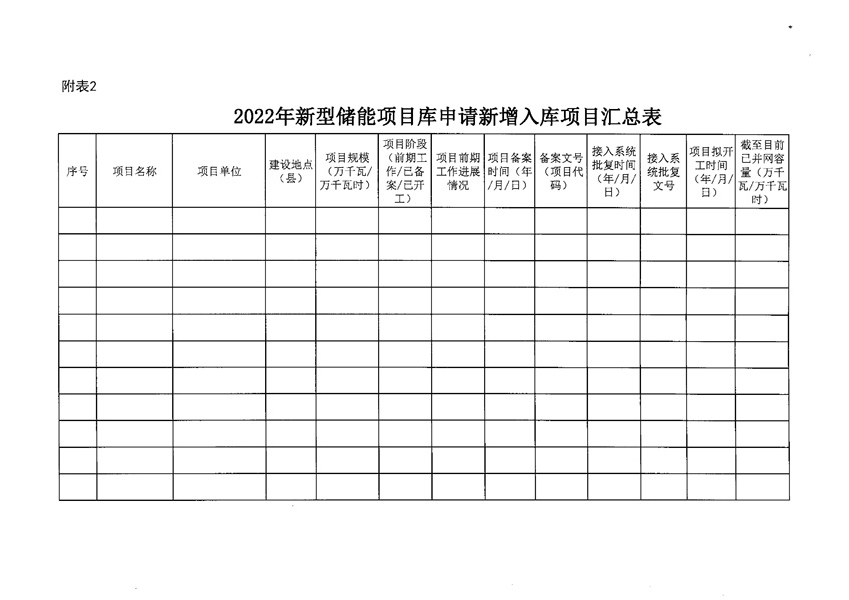 請各企業(yè)認(rèn)真閱讀省能源局通知內(nèi)容,并于10月26日前將《2022年新型儲(chǔ)能可直接入庫項(xiàng)目匯總表》、《2022年新型儲(chǔ)能申請新增入庫項(xiàng)目匯總表》及相關(guān)證明材料的電子版(加蓋企業(yè)公章的PDF版和可編輯Excel版)發(fā)送至郵箱:[email protected],逾期不再受理。