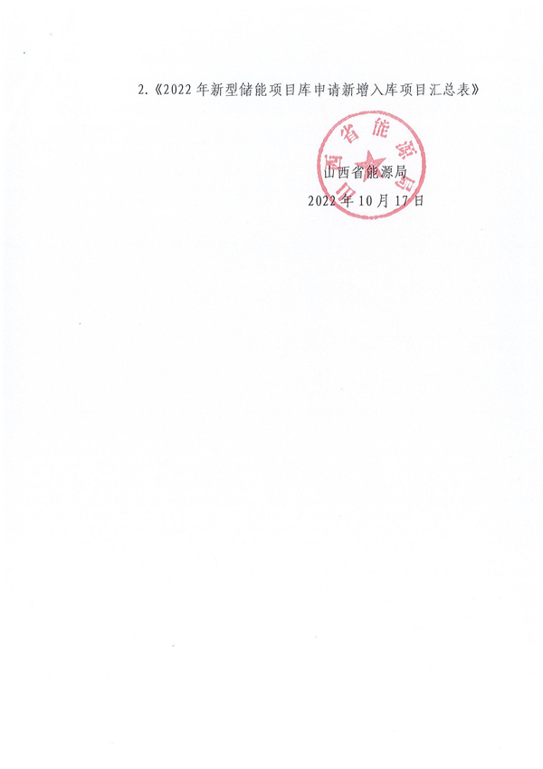 10月20日,山西省能源局發(fā)布關(guān)于組織建立和報(bào)送新型儲(chǔ)能省級(jí)規(guī)劃項(xiàng)目庫的通知,通知指出,入庫項(xiàng)目分為新能源場站配置新型儲(chǔ)能項(xiàng)目、電網(wǎng)側(cè)新型儲(chǔ)能項(xiàng)目、用戶側(cè)新型儲(chǔ)能項(xiàng)目、聯(lián)合火電調(diào)頻儲(chǔ)能試點(diǎn)項(xiàng)目等。