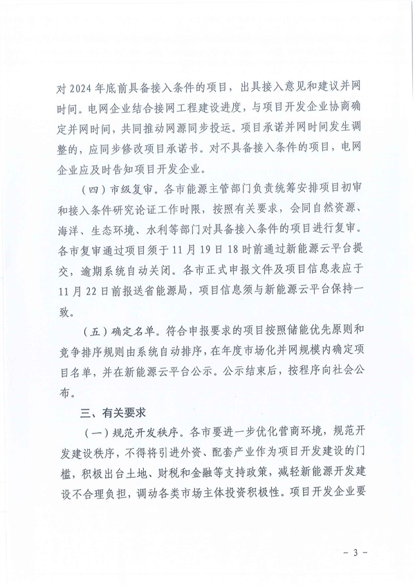 文件明確,規(guī)范開發(fā)秩序。各市要進(jìn)一步優(yōu)化營(yíng)商環(huán)境,規(guī)范開發(fā)建設(shè)秩序,不得將引進(jìn)外資、配套產(chǎn)業(yè)作為項(xiàng)目開發(fā)建設(shè)的門檻,積極出臺(tái)土地、財(cái)稅和金融等支持政策,減輕新能源開發(fā)建設(shè)不合理負(fù)擔(dān),調(diào)動(dòng)各類市場(chǎng)主體投資積極性。項(xiàng)目開發(fā)企業(yè)要堅(jiān)持實(shí)事求是,充分考慮項(xiàng)目經(jīng)濟(jì)性和可行性,科學(xué)確定配置儲(chǔ)能容量,杜絕盲目競(jìng)爭(zhēng)、惡意競(jìng)爭(zhēng)。