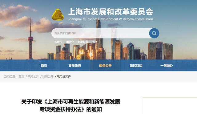 上海市可再生能源和新能源發(fā)展專項(xiàng)資金扶持辦法