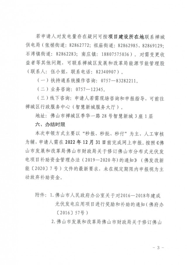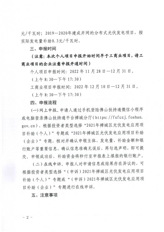近日,佛山市禪城區(qū)發(fā)展和改革局印發(fā)《關(guān)于開展2021年度禪城區(qū)光伏發(fā)電應(yīng)用項日補(bǔ)助資金申報工作的通知》。