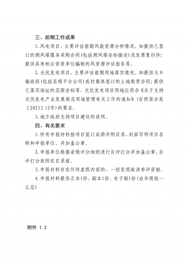 根據(jù)發(fā)布《陜西省2023年風(fēng)電光伏發(fā)電項目保障性并網(wǎng)規(guī)模競爭性配置辦法》顯示,此次項目的申報范圍為陸上風(fēng)電項目、地面光伏發(fā)電項目。申報要求為項目單體規(guī)模原則上不小于5萬千瓦、不超過20萬千瓦;縣(市、區(qū))自然資源、林業(yè)、生態(tài)環(huán)境等部門出具申報項目具備建設(shè)條件的說明;縣(市、區(qū))政府出具支持項目建設(shè)的說明;企業(yè)出具項目建設(shè)的承諾函。