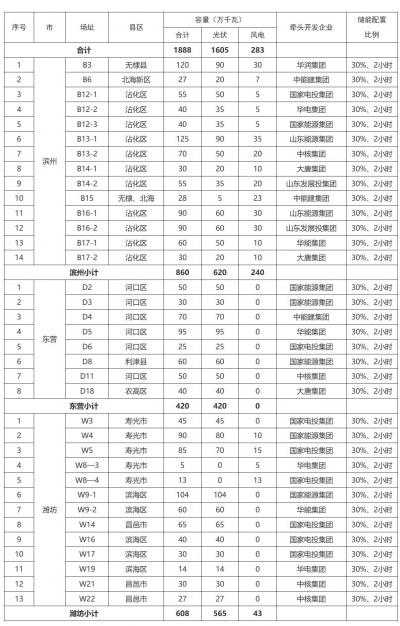 經(jīng)競爭優(yōu)選,確定35個項目、1888萬千瓦列入魯北基地“十四五”開發(fā)計劃。其中,濱州市開發(fā)項目14個、總規(guī)模860萬千瓦(光伏發(fā)電620萬千瓦、風(fēng)電240萬千瓦);東營市開發(fā)項目8個、總規(guī)模420萬千瓦,均為光伏發(fā)電;濰坊市開發(fā)項目13個、總規(guī)模608萬千瓦(光伏發(fā)電565萬千瓦、風(fēng)電43萬千瓦)。上述項目納入我省保障性并網(wǎng)項目名單,原則上2025年底前全部開工、2027年底前建成并網(wǎng)。