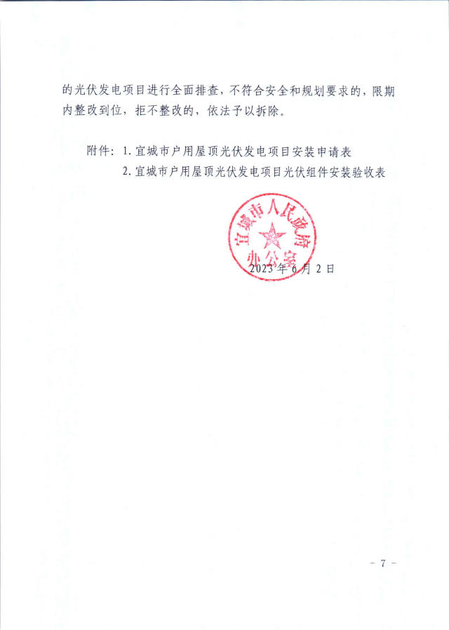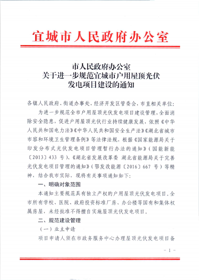 近日,湖北宜城發(fā)布《關于進一步規(guī)范宜城市戶用屋頂光伏發(fā)電項目建設的通知》,明確指出全市所有學校、醫(yī)院、政府投資標準廠房、辦公樓等國有和集體權屬房屋,未經批準不得擅自實施屋頂光伏發(fā)電項目,而戶用光伏項目并網需要8個部門的簽字。