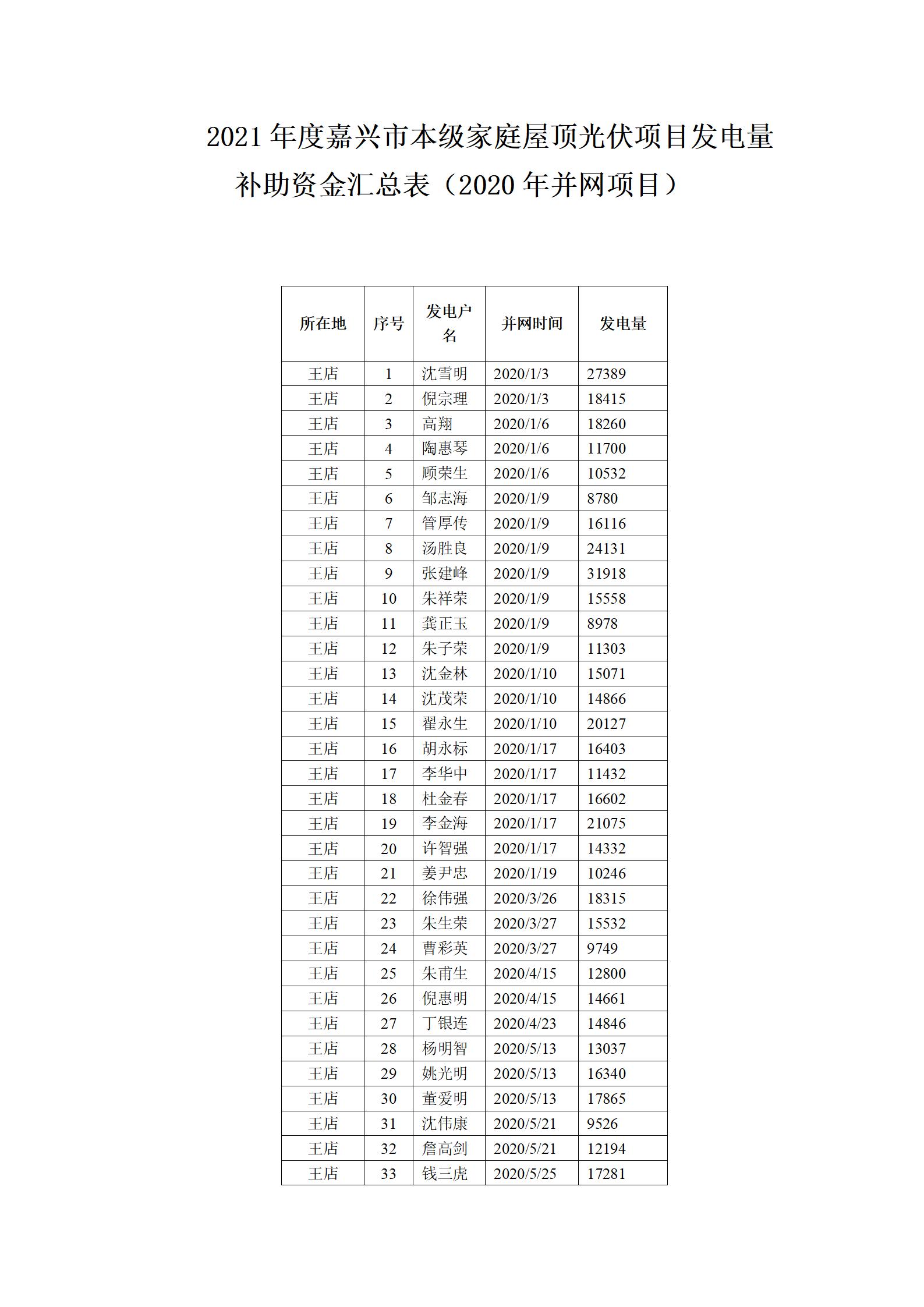 附件:2021年度嘉興市本級(jí)家庭屋頂光伏發(fā)電量(2020年并網(wǎng))補(bǔ)助資金公示