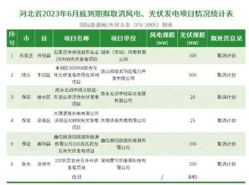 河北省2023年6月底到期風電、光伏發(fā)電項目擬調(diào)整情況公示