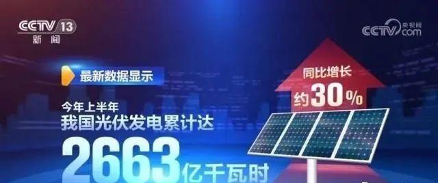 最新數(shù)據(jù)顯示,今年上半年,我國(guó)光伏發(fā)電累計(jì)達(dá)2663億千瓦時(shí),同比增長(zhǎng)約30%。新增發(fā)電裝機(jī)規(guī)模7842萬(wàn)千瓦,同比增長(zhǎng)154%,基本與去年全年數(shù)據(jù)相當(dāng)。截至六月底,光伏發(fā)電累計(jì)裝機(jī)規(guī)模約4.7億千瓦,已超過(guò)水電成為我國(guó)裝機(jī)規(guī)模第二大電源。