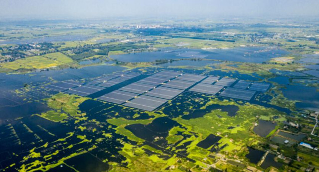 山東省濰坊市壽光市羊口鎮(zhèn)是百年曬鹽之地,這里的鹽堿地改良一直是個(gè)難題。國(guó)家電投壽光官臺(tái)營(yíng)子150兆瓦漁光互補(bǔ)發(fā)電項(xiàng)目通過(guò)廢舊低效鹽田水產(chǎn)養(yǎng)殖與光伏發(fā)電相結(jié)合,在水面上方架設(shè)光伏板陣列、板下水域養(yǎng)殖魚(yú)蝦,實(shí)現(xiàn)了土地資源的節(jié)約集約高效利用。經(jīng)測(cè)算,該項(xiàng)目每年可提供清潔電能約2.52億千瓦時(shí),替代標(biāo)準(zhǔn)煤7.7萬(wàn)噸,減排二氧化碳21萬(wàn)噸。