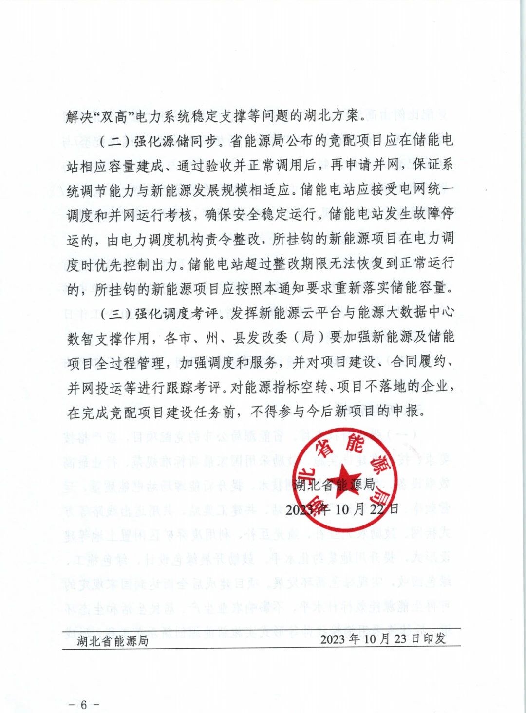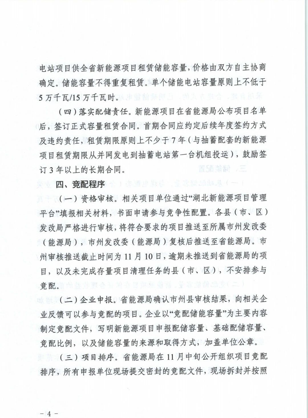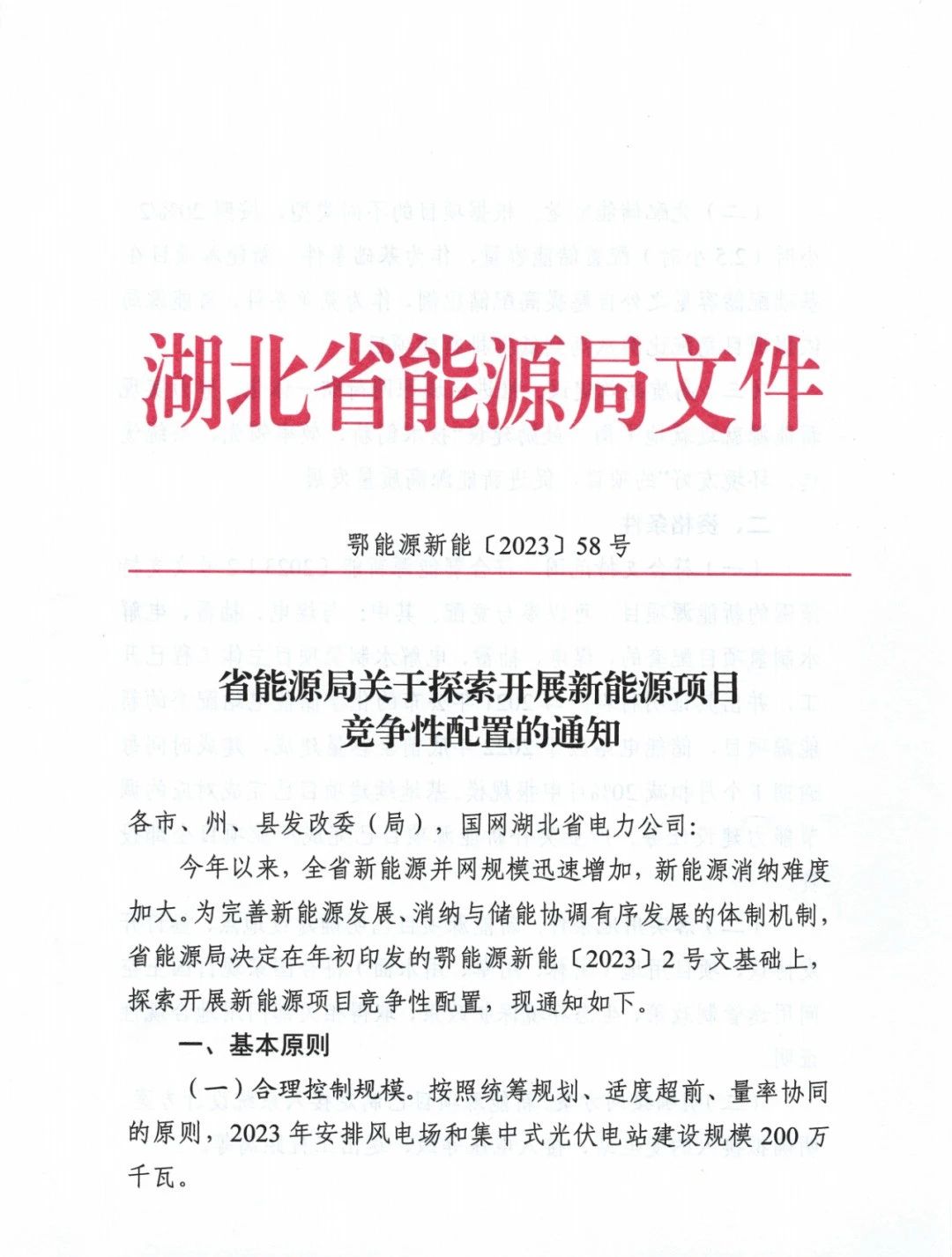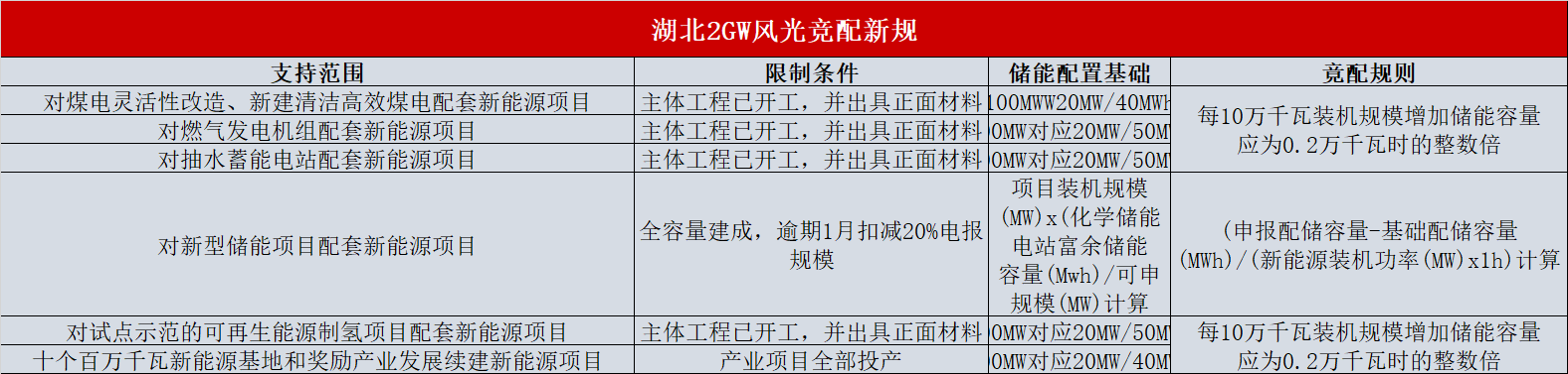 10月23日,湖北省能源局印發(fā)《關(guān)于探索開展新能源項(xiàng)目競(jìng)爭(zhēng)性配置的通知》,擬安排2GW風(fēng)、光項(xiàng)目指標(biāo),并以儲(chǔ)能配置比例作為競(jìng)爭(zhēng)優(yōu)選條件。