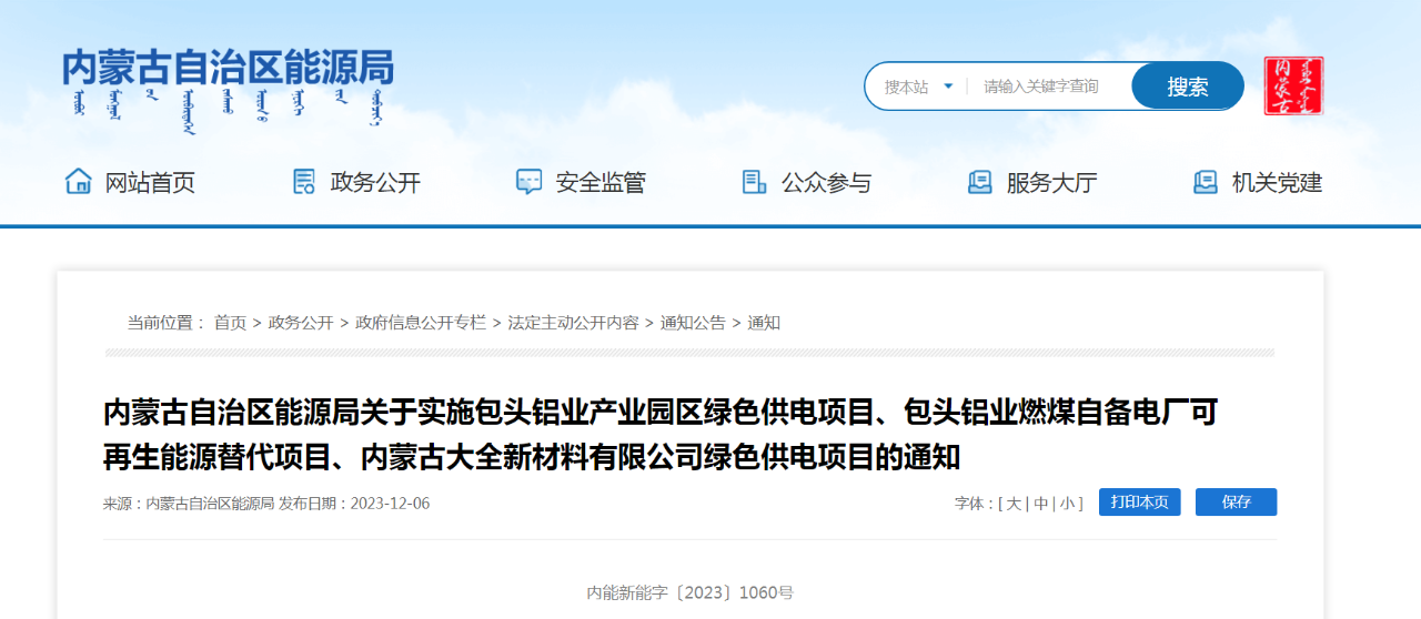 日前,內(nèi)蒙古自治區(qū)能源局網(wǎng)站發(fā)布“內(nèi)蒙古自治區(qū)能源局關(guān)于實施包頭鋁業(yè)產(chǎn)業(yè)園區(qū)綠色供電項目、包頭鋁業(yè)燃煤自備電廠可再生能源替代項目、內(nèi)蒙古大全新材料有限公司綠色供電項目的通知”(內(nèi)能新能字〔2023〕1060號),根據(jù)文件,自治區(qū)能源局組織評估單位和專家在《包頭市新能源新場景應用方案》的基礎(chǔ)上,對包頭市申報的市場化新能源項目子方案進行了評估。
