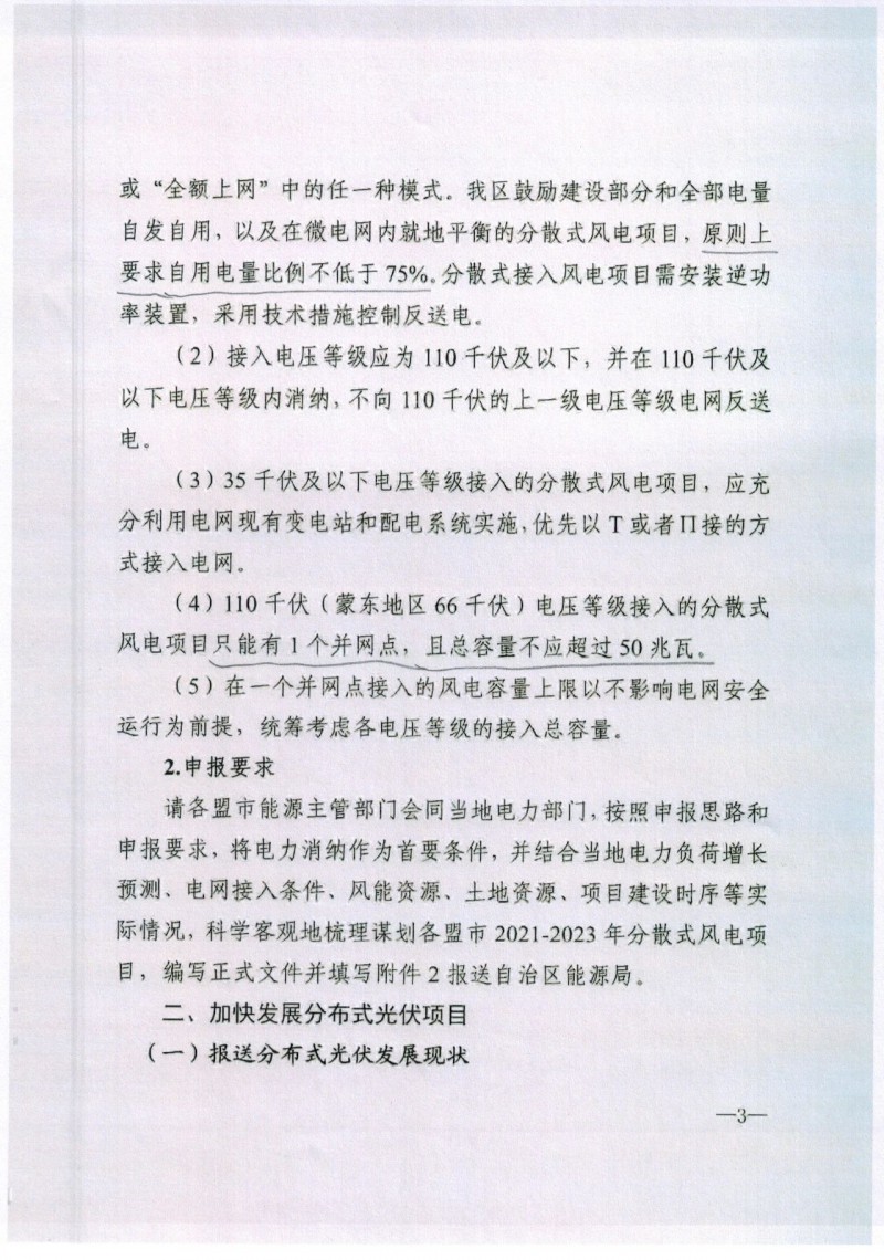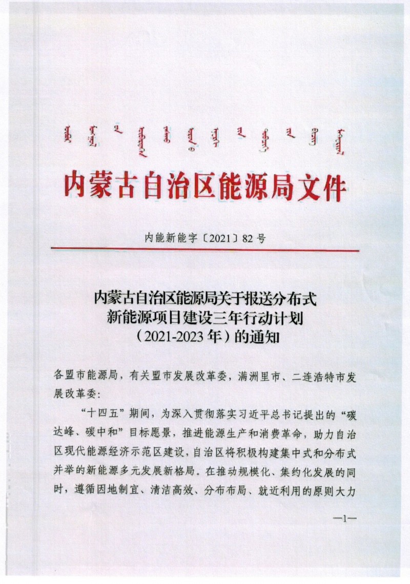 近日,內蒙古自治區(qū)能源局發(fā)布關于報送《分布式新能源項目建設三年行動計劃(2021-2023年)》的通知。