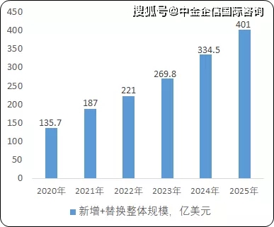 (2)全球光伏逆變器行業(yè)市場分析:2010年以來,全球光伏逆變器的出貨量基本處于高速增長狀態(tài)。據(jù)中金企信國際咨詢公布的《2021-2027年中國光伏逆變器市場競爭戰(zhàn)略研究及投資前景預測報告》統(tǒng)計數(shù)據(jù)顯示:2020年全球光伏逆變器的新增及替換整體市場規(guī)模將達到約136GW,且將在未來數(shù)年保持在平均20%以上的增長速度,至2025年全球光伏逆變器新增及替換整體市場將有望達到400GW的市場。