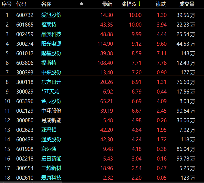 截止收盤,中證光伏產(chǎn)業(yè)指數(shù)今日上漲5.33%,光伏相關(guān)板塊個股漲多跌少。