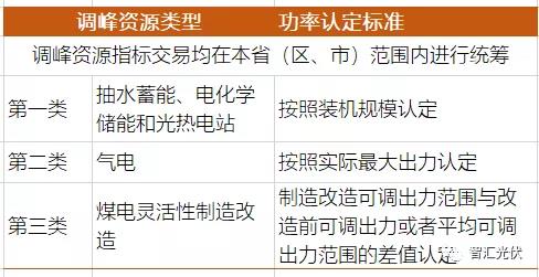 根據(jù)“1138號文”,被認(rèn)可的調(diào)峰資源可以分為三類,每類的調(diào)峰能力(功率)的認(rèn)定方式如下表所示。