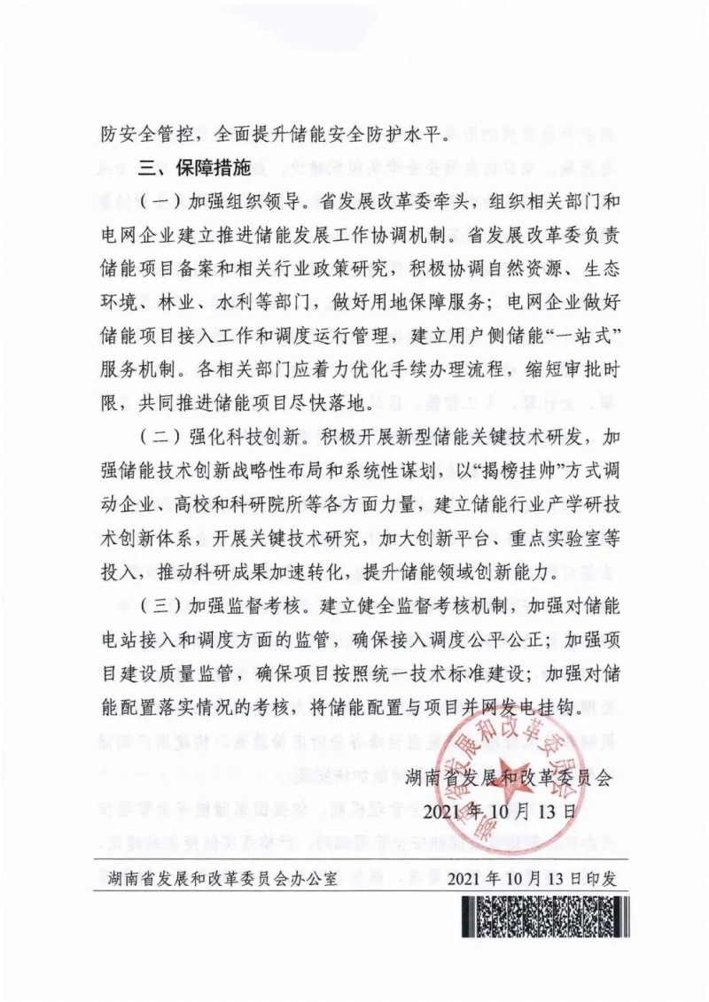 10月13日,湖南省發(fā)改委下發(fā)《關(guān)于加快推動(dòng)湖南省電化學(xué)儲(chǔ)能發(fā)展的實(shí)施意見》,文件明確以發(fā)展電網(wǎng)側(cè)獨(dú)立儲(chǔ)能為重點(diǎn),集中規(guī)劃建設(shè)一批電網(wǎng)側(cè)儲(chǔ)能電站,力爭(zhēng)到2023年建成電化學(xué)儲(chǔ)能電站150萬(wàn)千瓦/300萬(wàn)千瓦時(shí)以上。